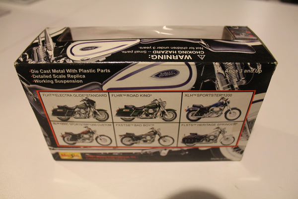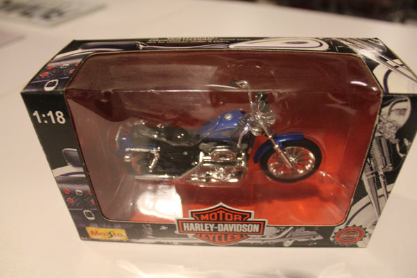 1997 Maisto 1/18 Scale Die-cast model of a Harley-Davidson XLH Sportster 1200. Item is new in the box, never opened. This one comes in blue and features a steerable handle with free wheel action. A great item for any motorcycle collection or the devoted Harley-Davidson fan.